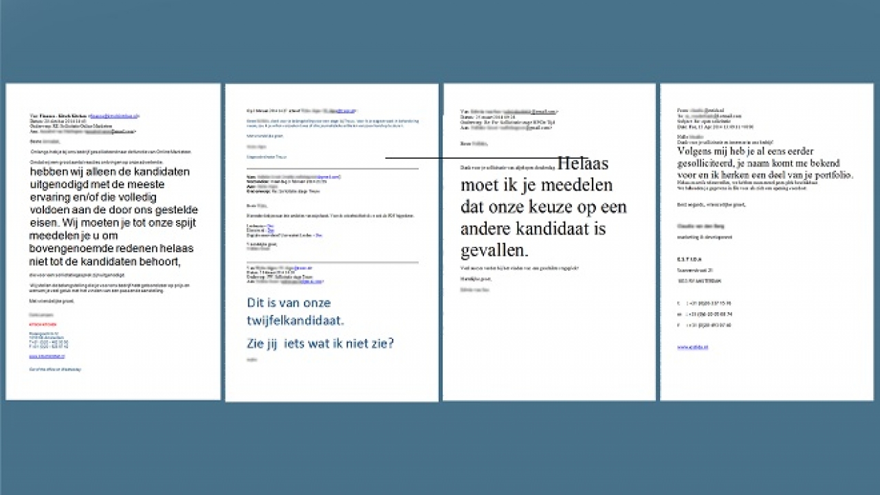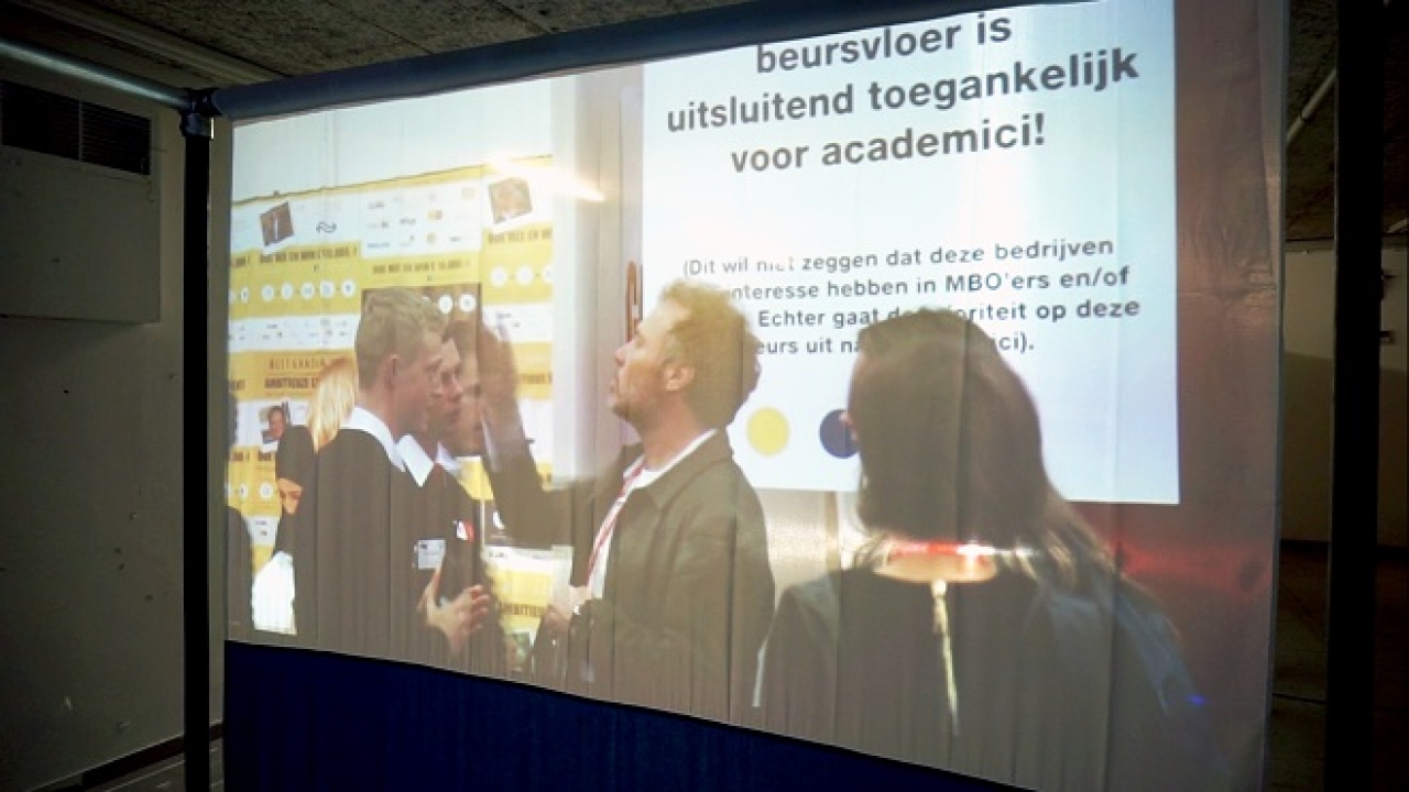 In de huidige prestatiemaatschappij draait het allemaal om werk, geld en status. In het Britse Journal of Clinical Psychology wordt geconcludeerd dat deze prestatiegeneratie narcistisch is – ‘grootheidsgedachten, behoefte aan goedkeuring en bewondering en gebrek aan inlevingsvermogen.’ Zelf heb ik een test gedaan op de site van het Psychologiemagazine om erachter te komen of ik narcistisch ben. Ja hoor, een hoge score: “Geef toe: u bent af en toe behoorlijk arrogant, en u denkt dat u precies doet wat u wilt, maar achter dat masker van zelfverzekerdheid gaat een onzeker persoon schuil”. Ik ga een onzekere tijd tegemoet over ruim een maand, wanneer ik mijn diploma hoop binnen te halen: de arbeidsmarkt. De banen liggen niet voor het oprapen. Enkel een goede opleiding brengt je nog nergens in de arbeidsmarkt en de concurrentie is moordend. Er wordt alleen nog aandacht besteed aan dat ene talent of die persoon met uitzonderlijke prestaties. Dit werk gaat over de afwijzing die mij en vele andere vers afgestudeerden te wachten staat. We spartelen in het water en hopen de overkant te halen.
