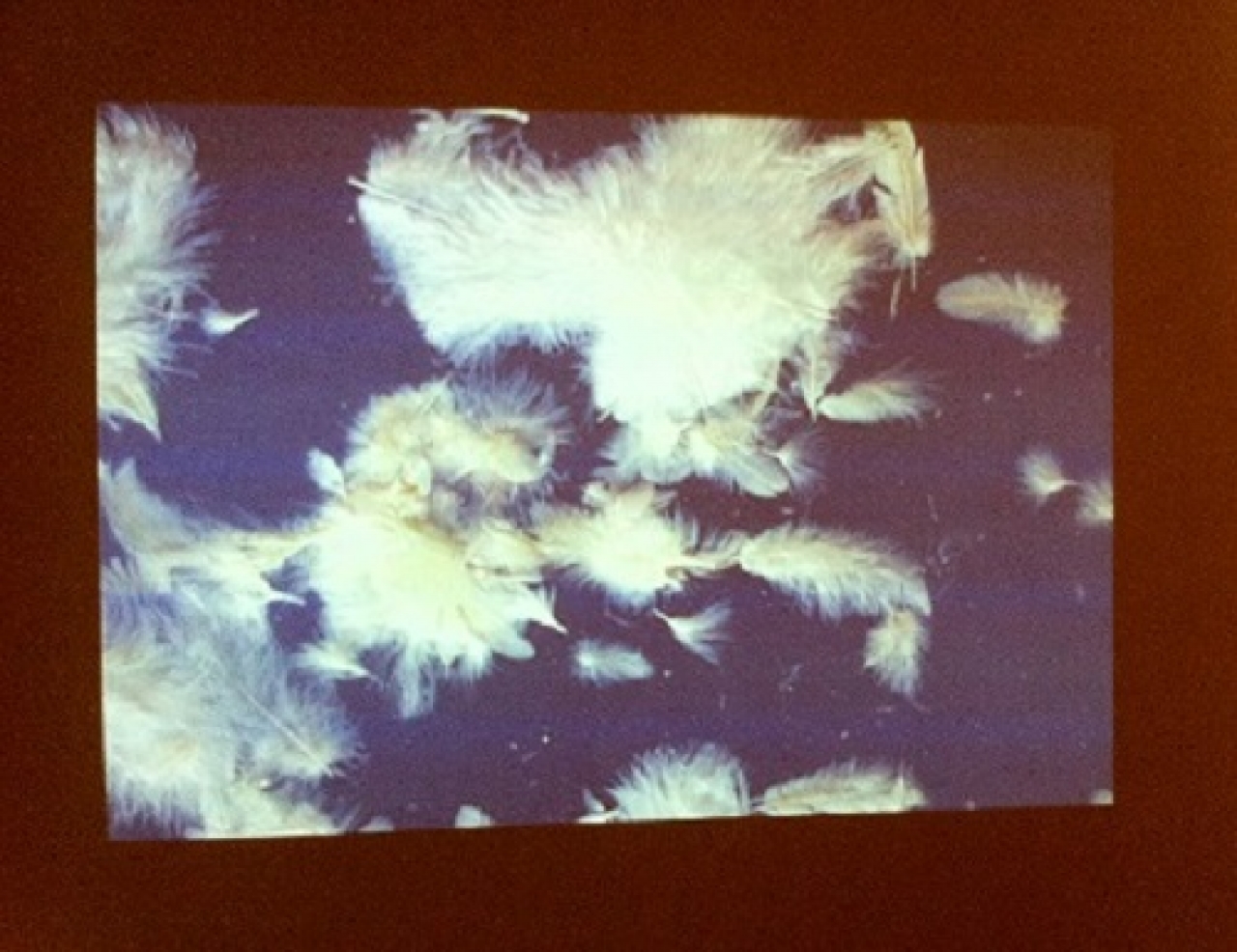 Henk Peeters, Rain of Feathers, 1999. Video duur 4:35 min. met muziek van Eric Calmes – Reflection of Beauty.