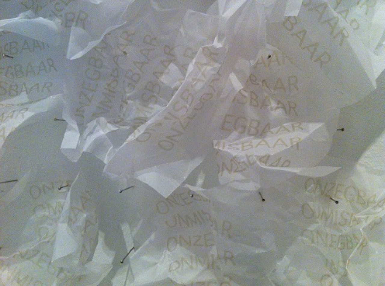 Lam de Wolf, Wolk “Onzegbaar”, 2013. Kalkpapier, spelden.